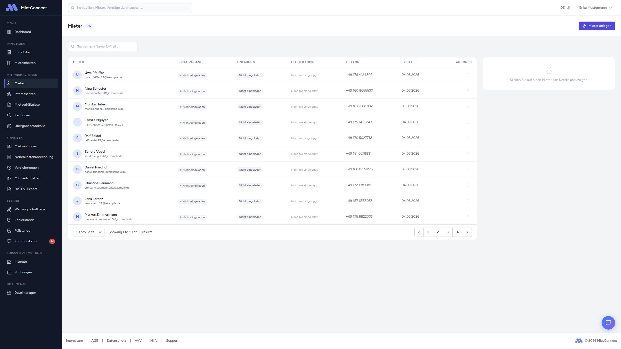 Die Mieter-Übersicht zeigt alle Ihre Mieter in einer Tabelle: